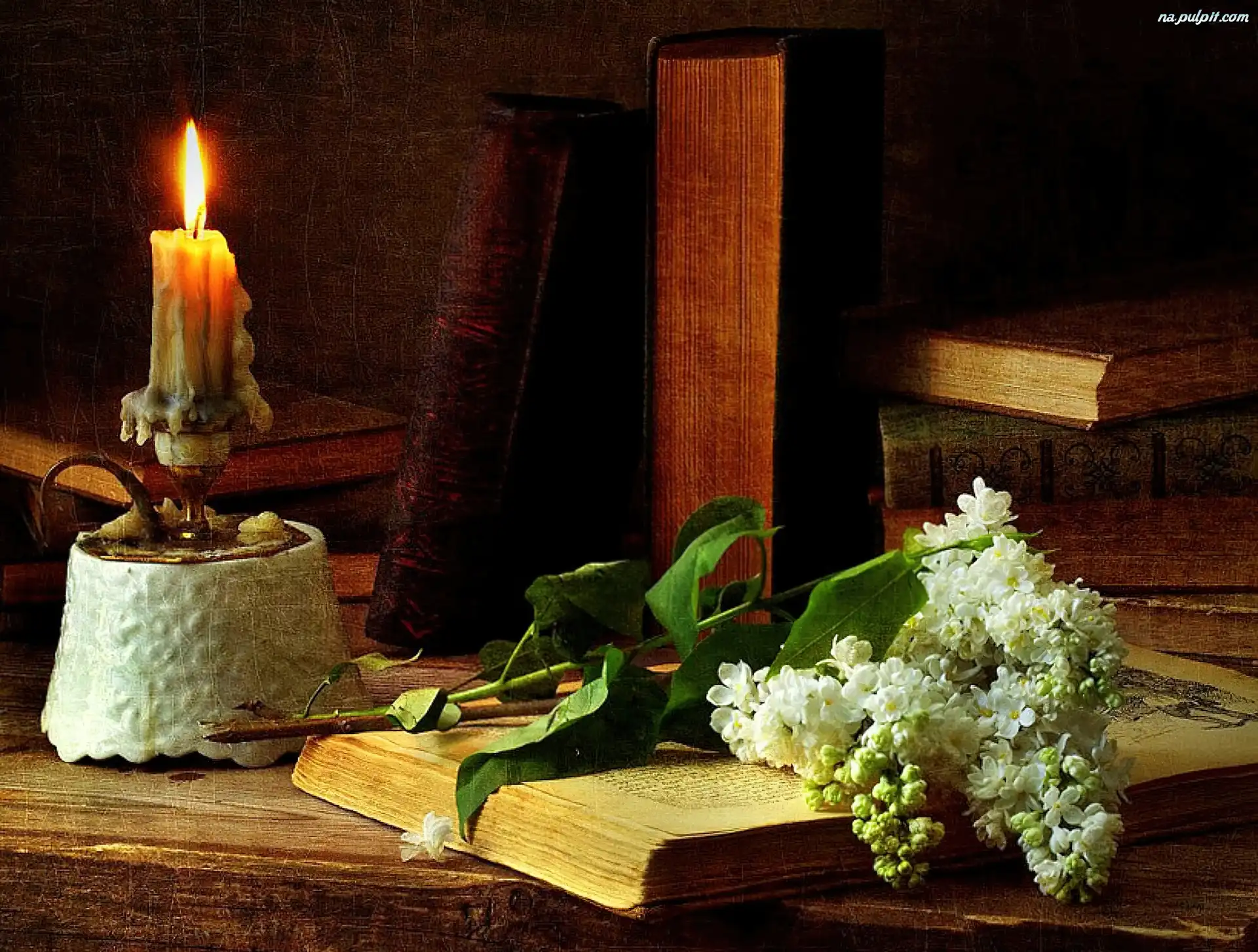 Świeca, Bez, Biały, Kompozycja, Książka Na Pulpit