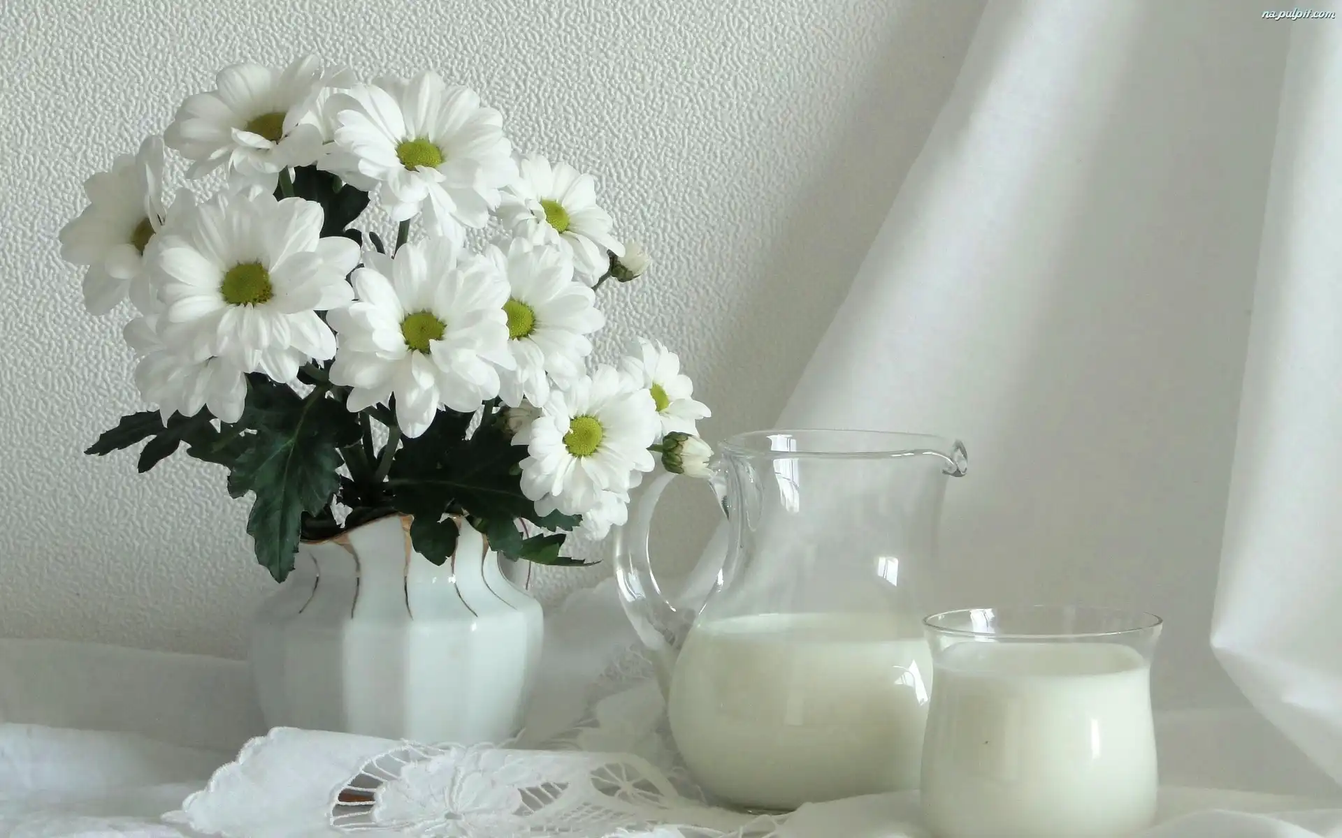 Biały, Mleko, Serwetka, Bukiet, Dzbanek, Kwiatów