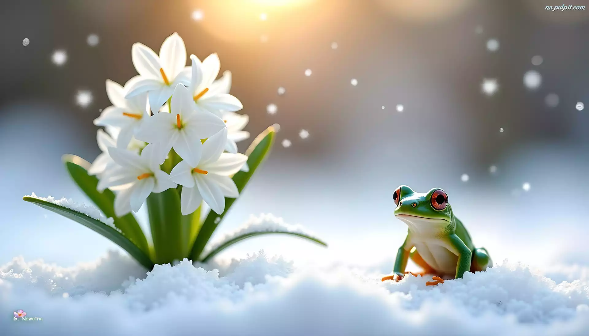Śnieg, Biały, Kwiat, Grafika, Żaba Na Pulpit