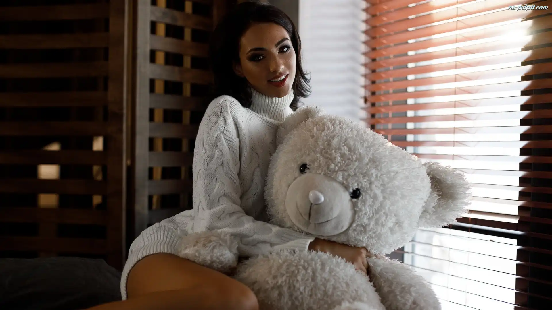Miś, Biały, Pluszowy, Dzianina, Sweter, Dziewczyna, Okno Na Pulpit
