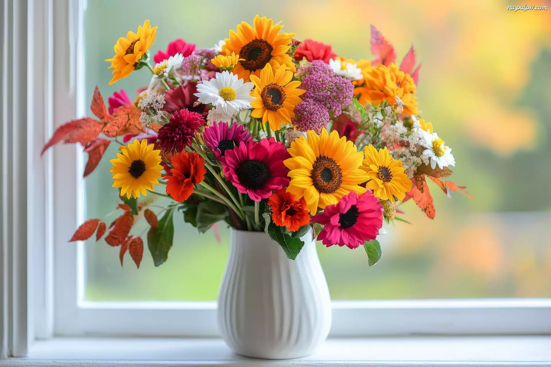 Wazon, Kwiaty, Bukiet, Biały, Kolorowe, Okno Na Pulpit