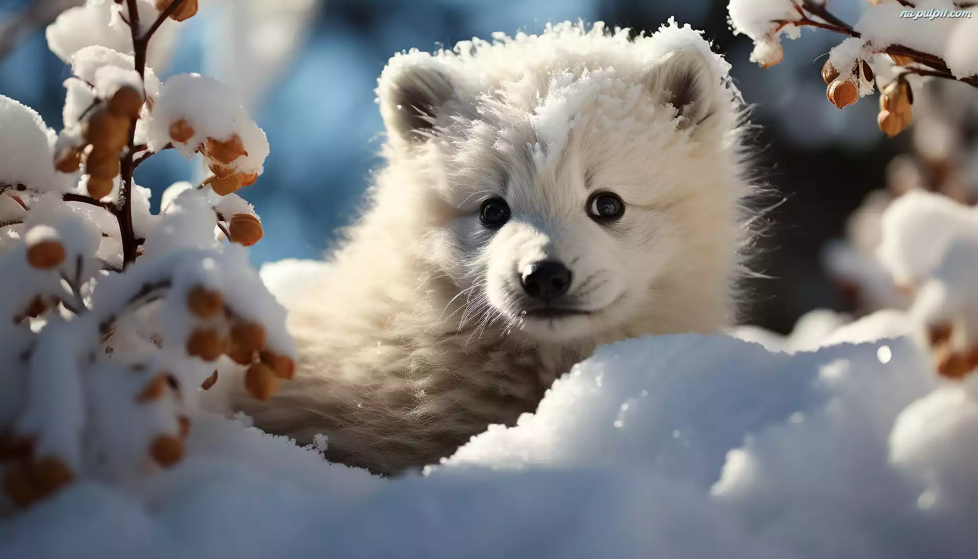 Zima, Biały, Pies, Śnieg, Szczeniak Na Pulpit