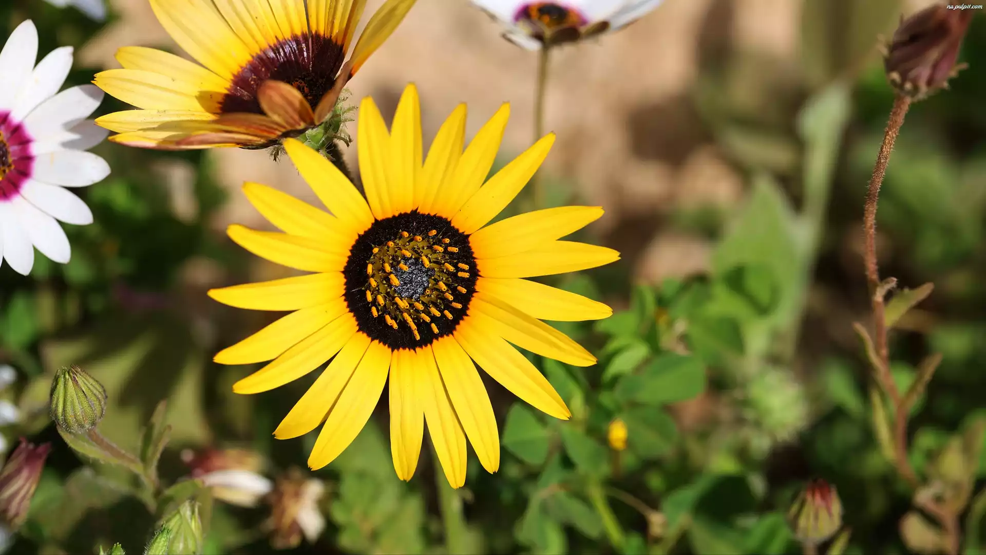 Pączki, Kwiaty, Żółty, Biały, Płatki, Rozmycie Na Pulpit