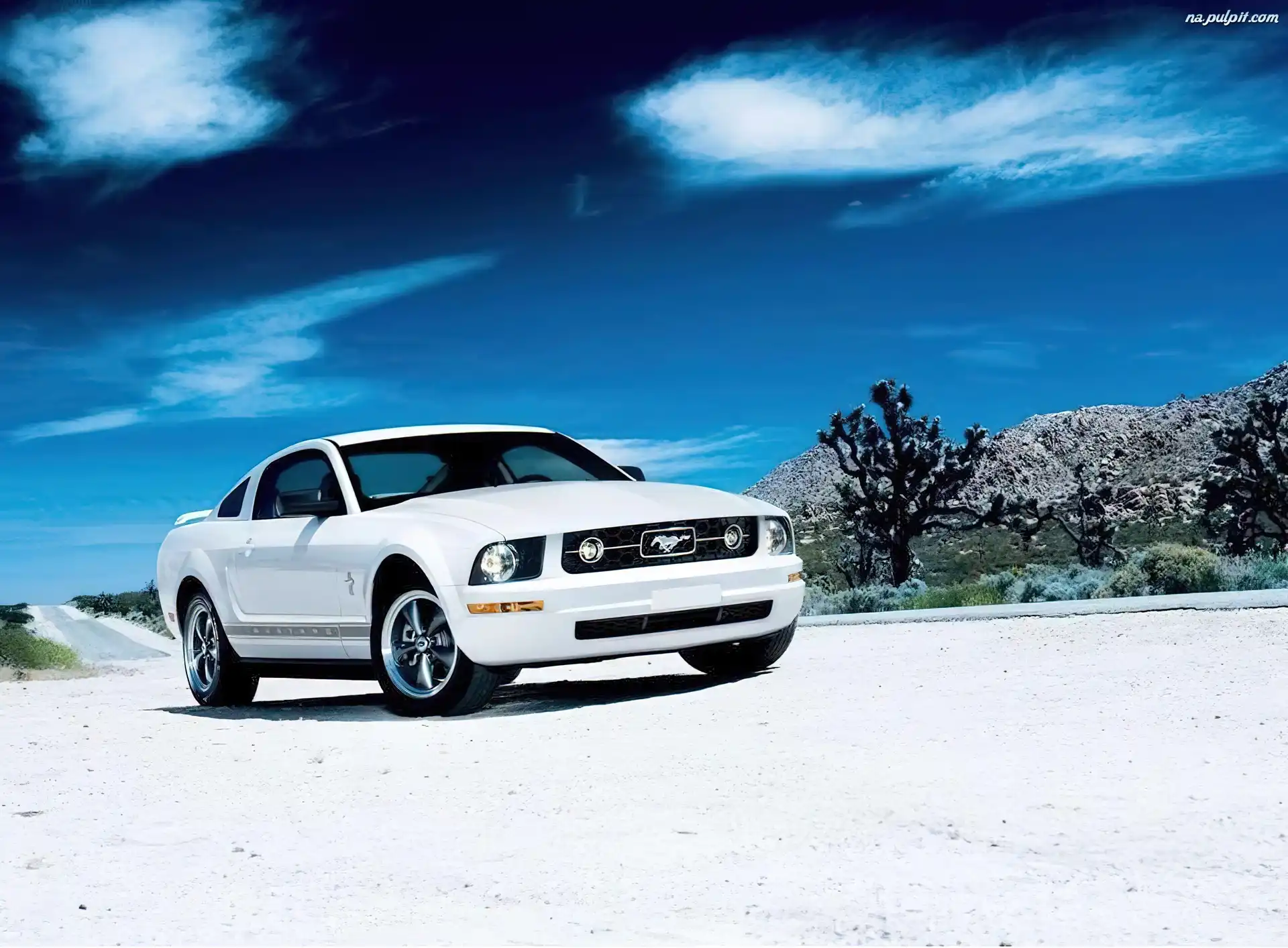Biały, Ford Mustang V6 Pony Na Pulpit