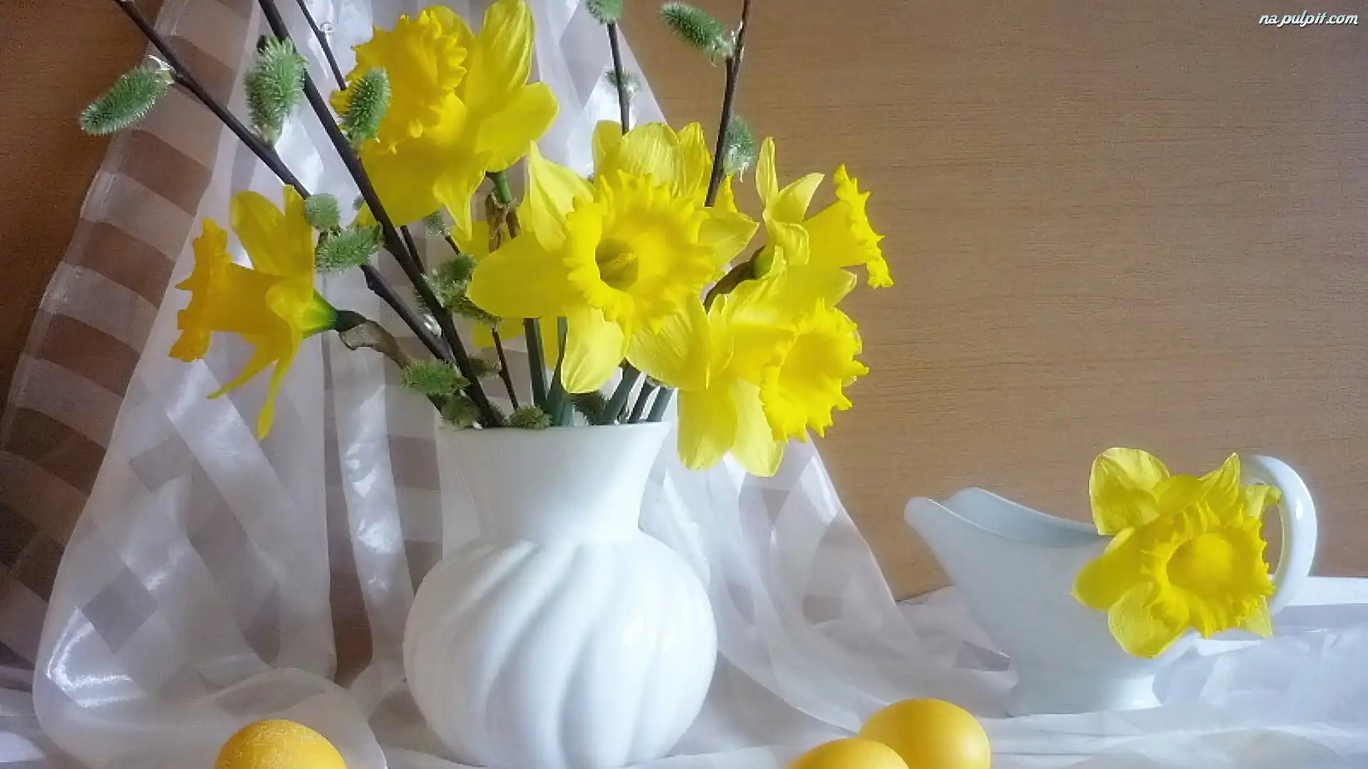 Żonkile, Wazon, Biały, Żółte Na Pulpit