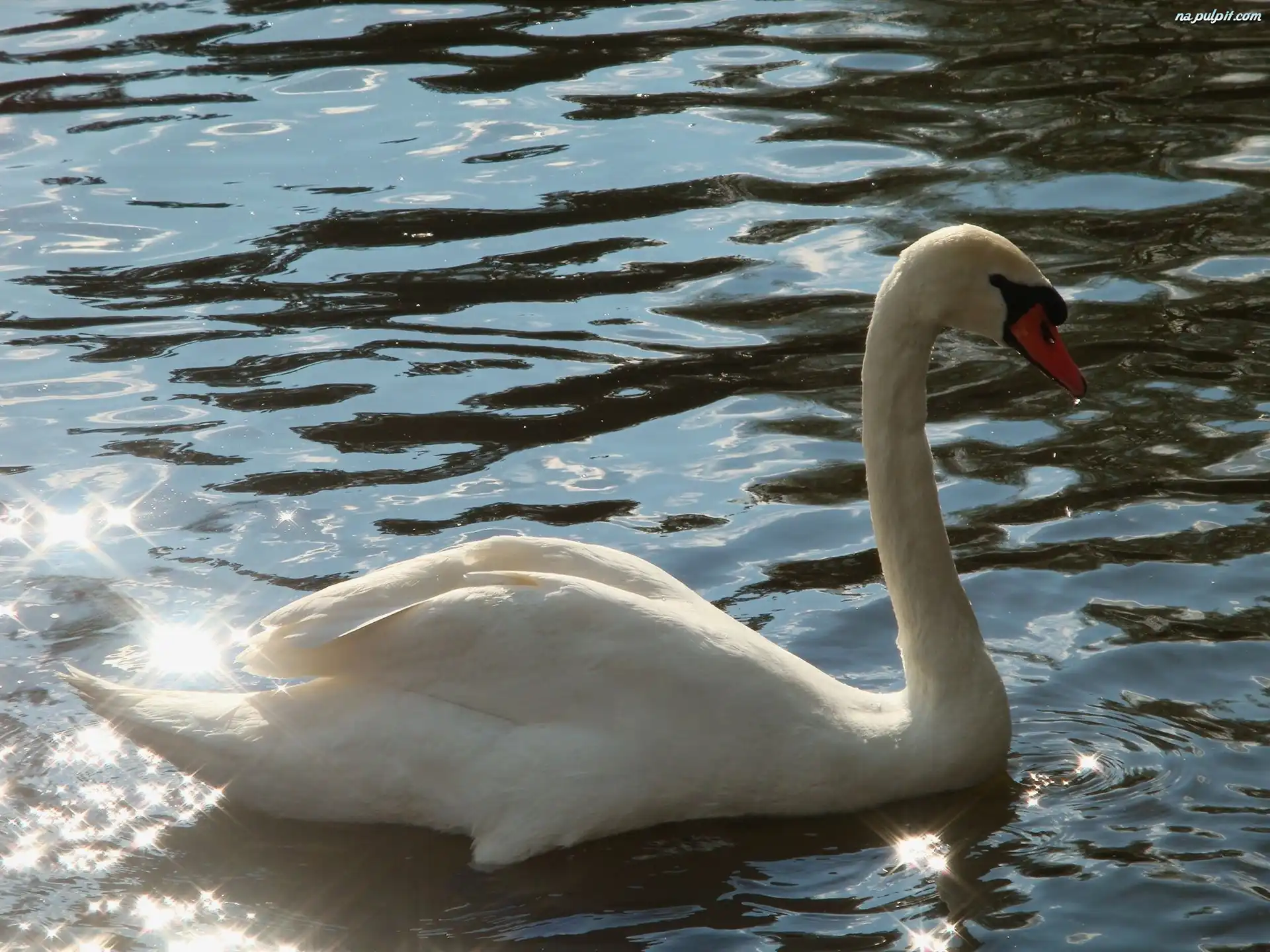 Światła, Woda, Łabędź, Biały, Refleksy Na Pulpit