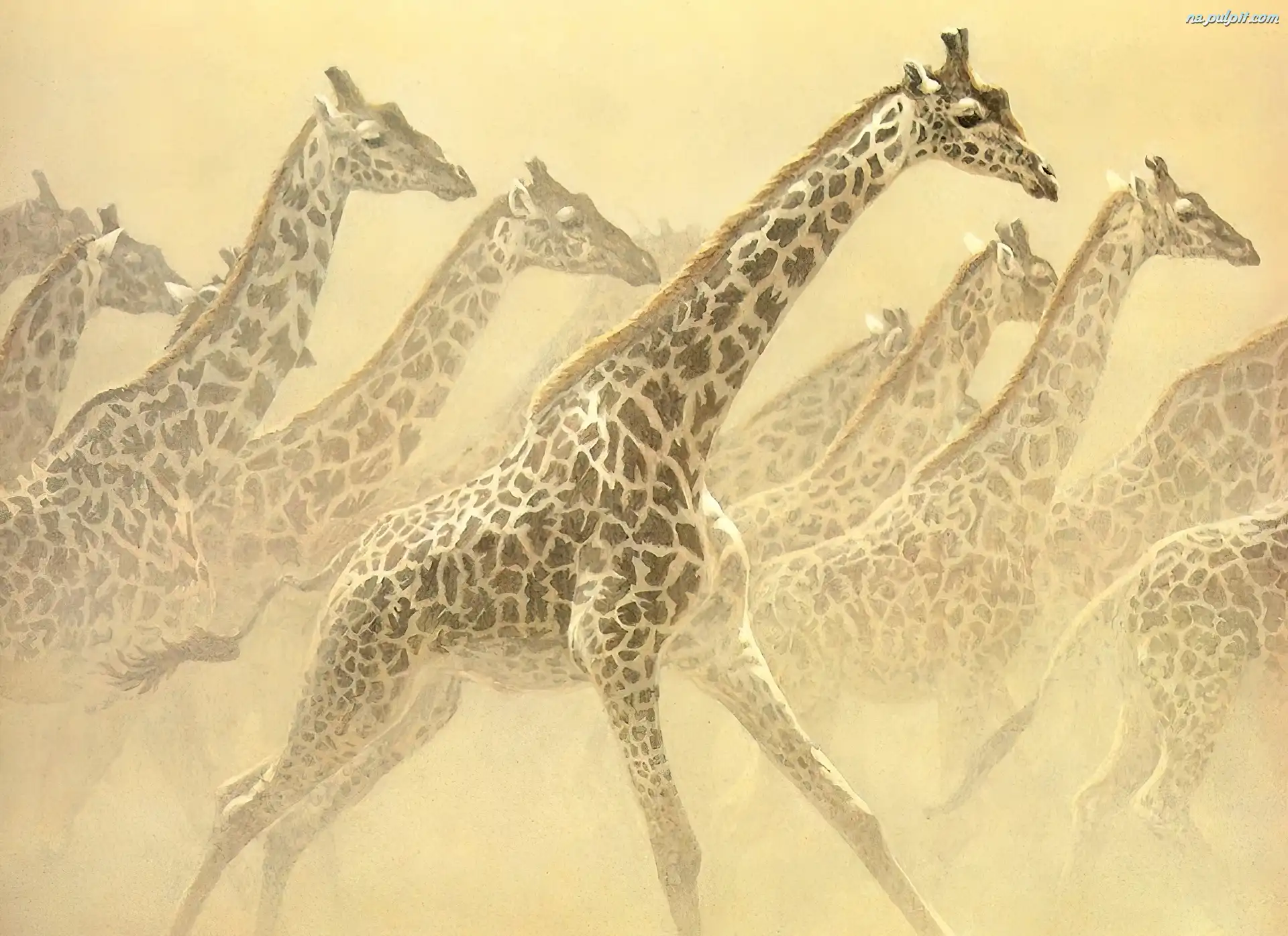 Żyraf, Biegnące, Stado Na Pulpit