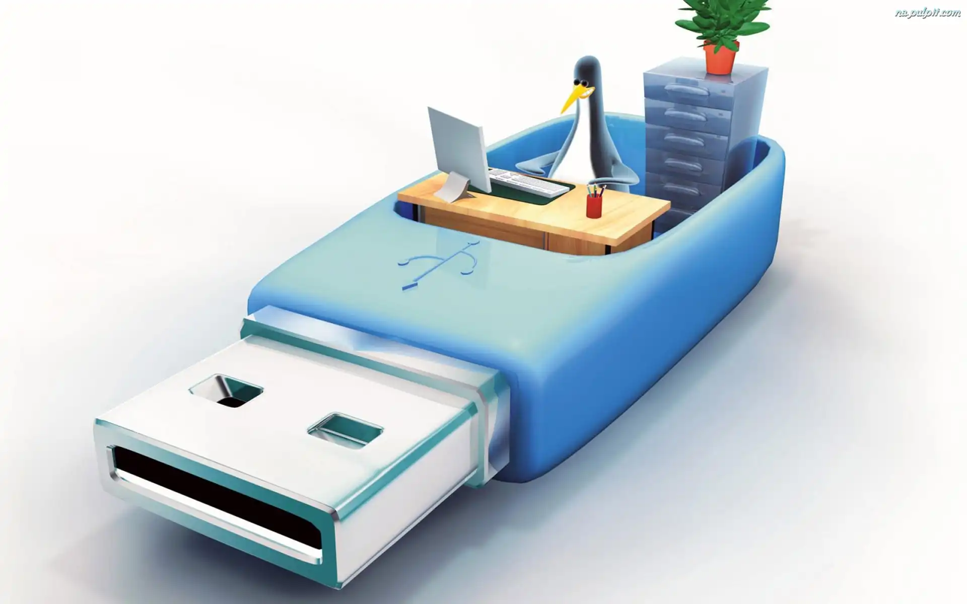 Biuro, Pendrive, Niebieski, Pingwin Na Pulpit