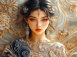 Kwiaty, Grafika, Makijaż, Biżuteria, Kobieta, Ornament