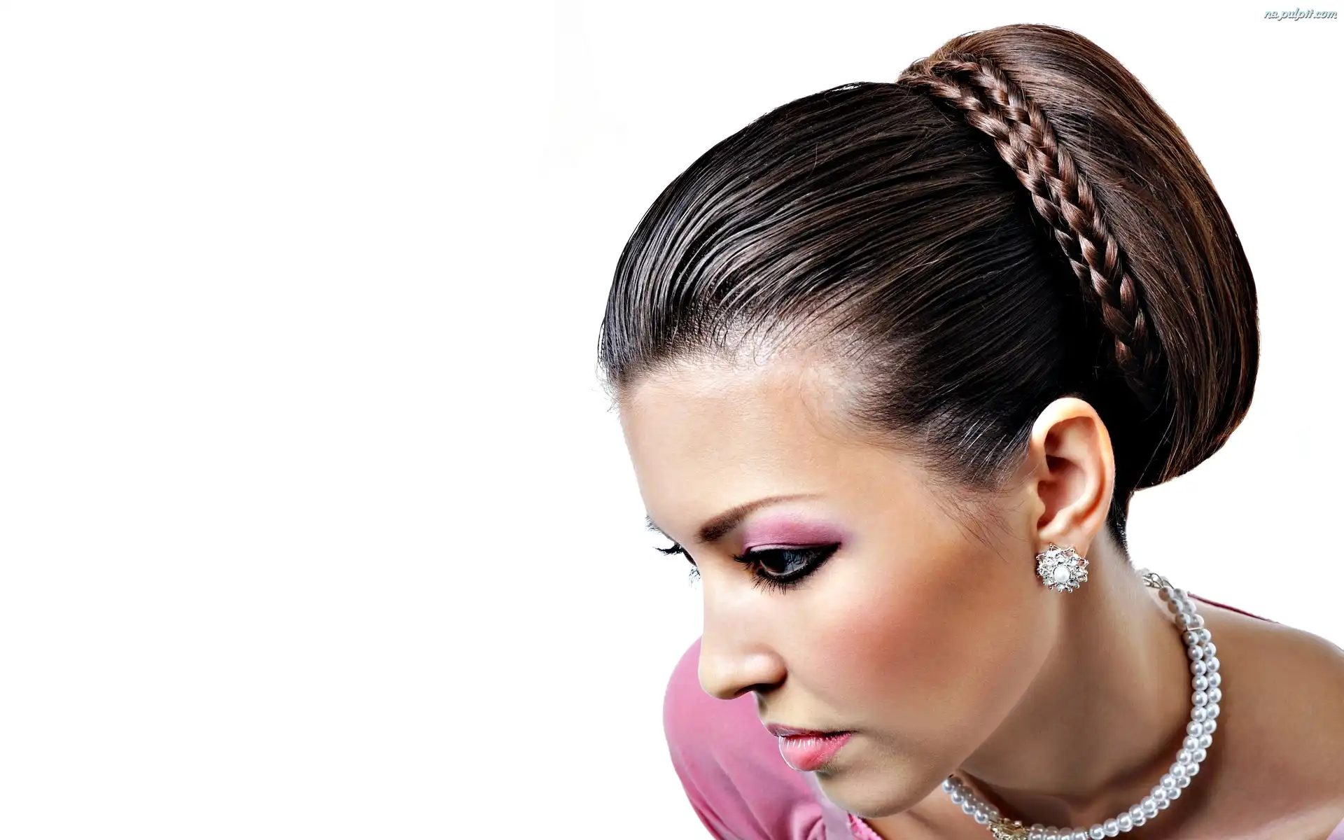 Biżuteria, Kok, Kobiety, Profil, Makijaż