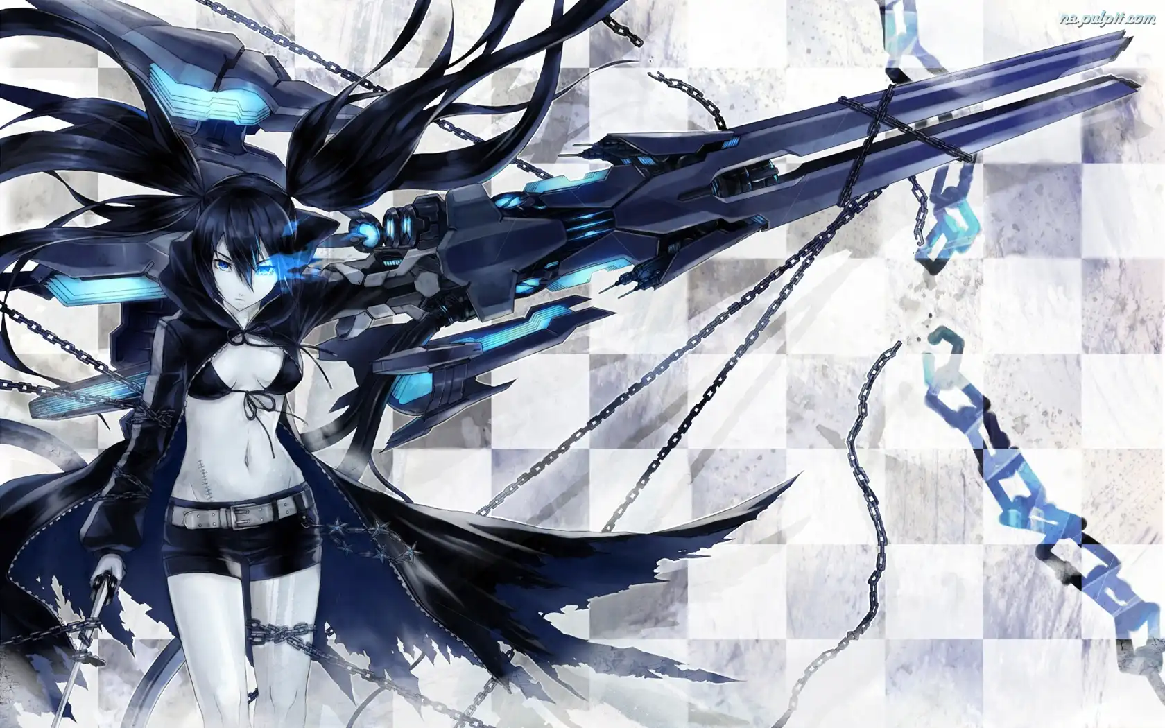 Black Rock Shooter, Księżyc Black Rock Shooter Pasek, Łańcuchy, Black Rock Shooter, Wieżowce Black Rock Shooter, Szachownica Dziewczyny, Black Rock Shooter, Pistolety Black Rock Shooter, Łańcuch, Miecz Black Rock Shooter, Miecz Black Rock Shooter, Manga Black Rock Shooter, Cmentarz Płaszczyk, Spodenki, Black Rock Shooter, Stanik Black Rock Shooter Zespół, Black Rock Shooter Black Rock Shooter Black Rock Shooter, Dziewczynka
