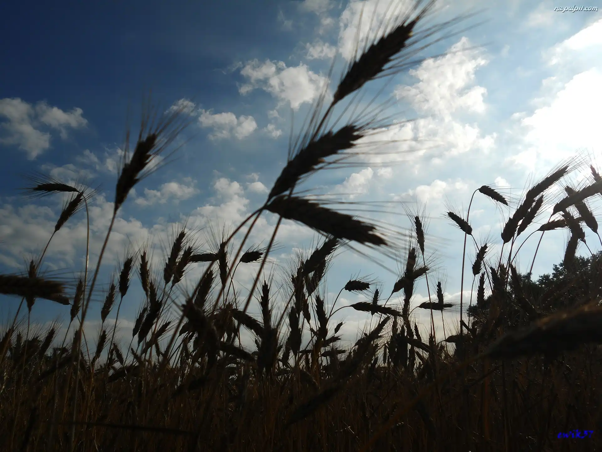 Blask, Niebo, Zboża, Kłosy, Chmury