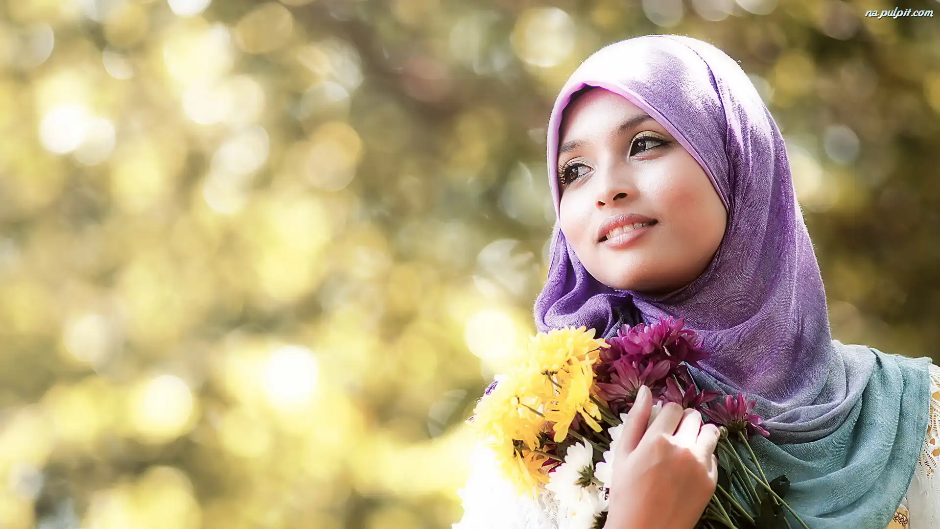 Blask, Bukiet, Szal, Kobieta, Kwiatów