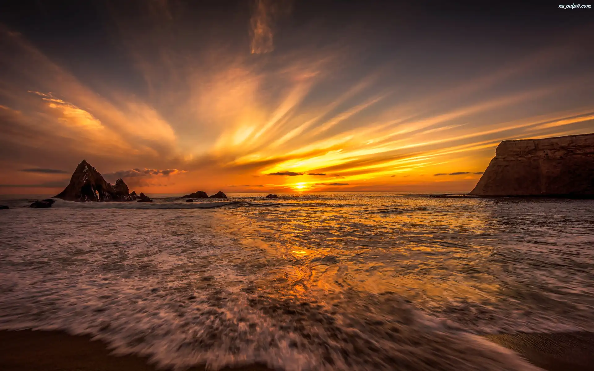 Blask, Skały, Morze, Zachód słońca Na Pulpit