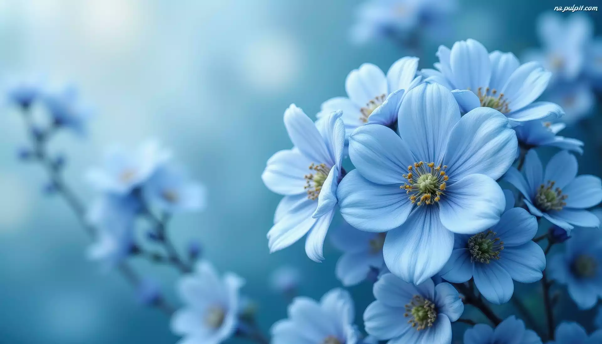 Tło, Błękitne, Kwiaty, Grafika, Rozmyte Na Pulpit