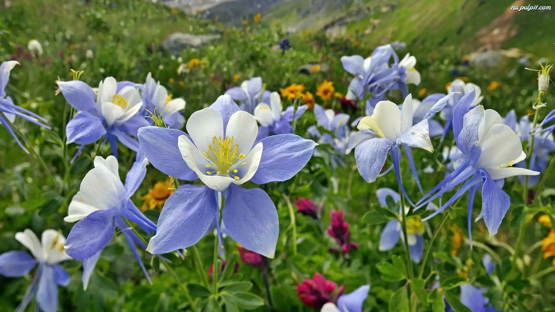 Łąka, Biała, Błękitno, Ancolia Na Pulpit