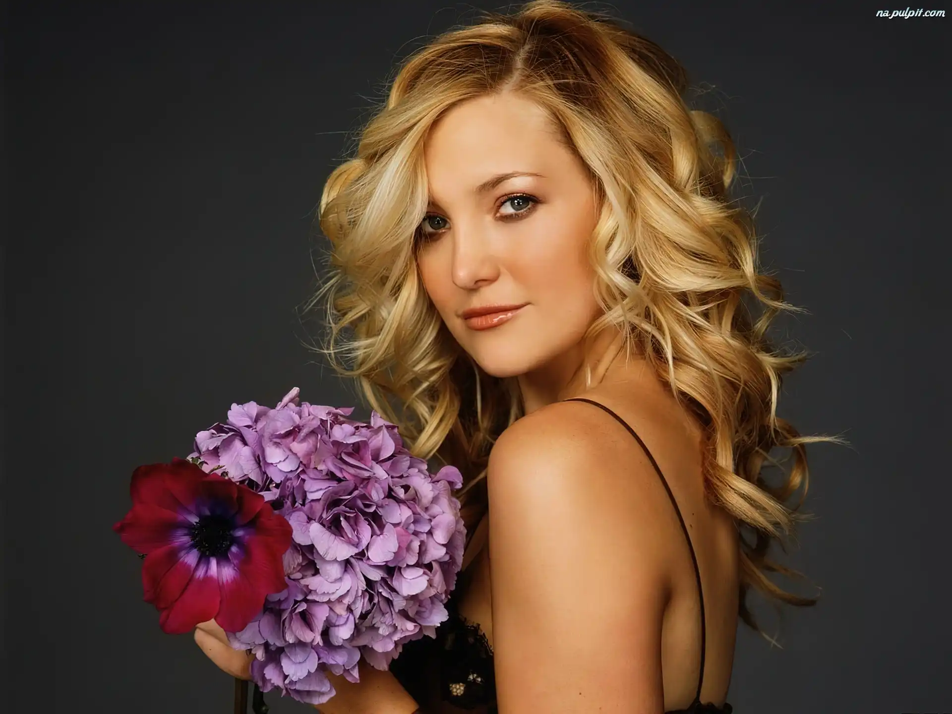 Blondynka, Spojrzenie, Kwiaty, Kate Hudson