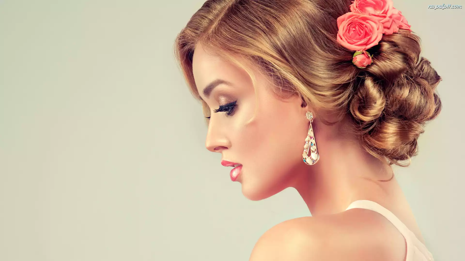 Kolczyk, Róże, Włosy, Blondynka, Kobieta, Upięte, Profil Na Pulpit