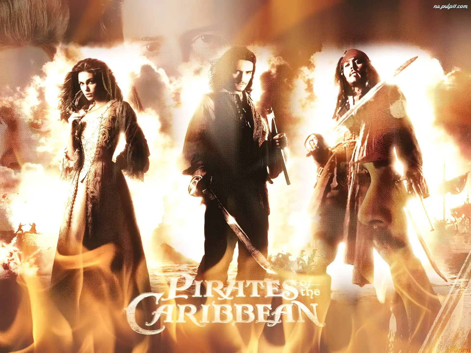 Johnny Depp, Keira Knightley, Piraci Z Karaibów, ogień, Orlando Bloom
