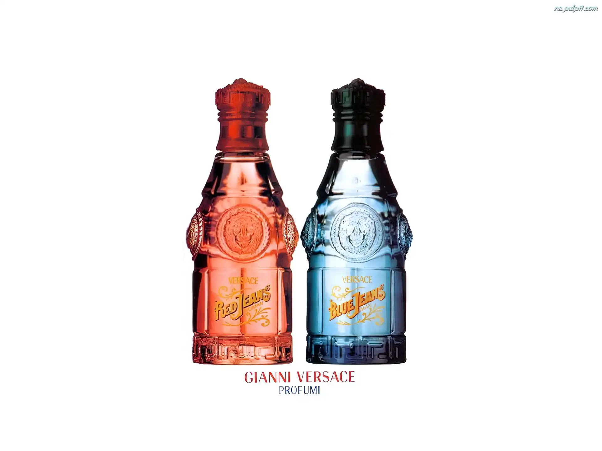 blue, perfumy, flakony, Versace, red Na Pulpit