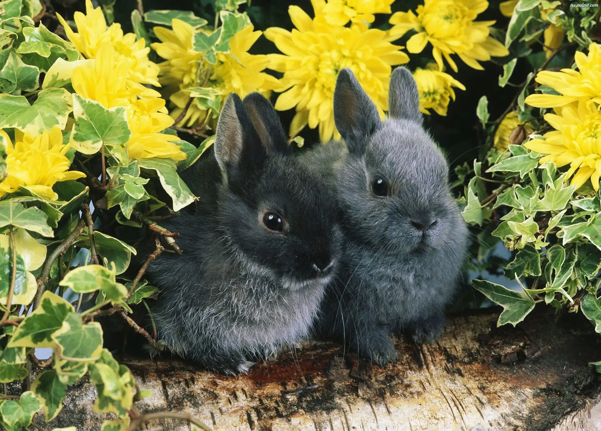 bluszcz, kwiaty, Króliki, pień Na Pulpit