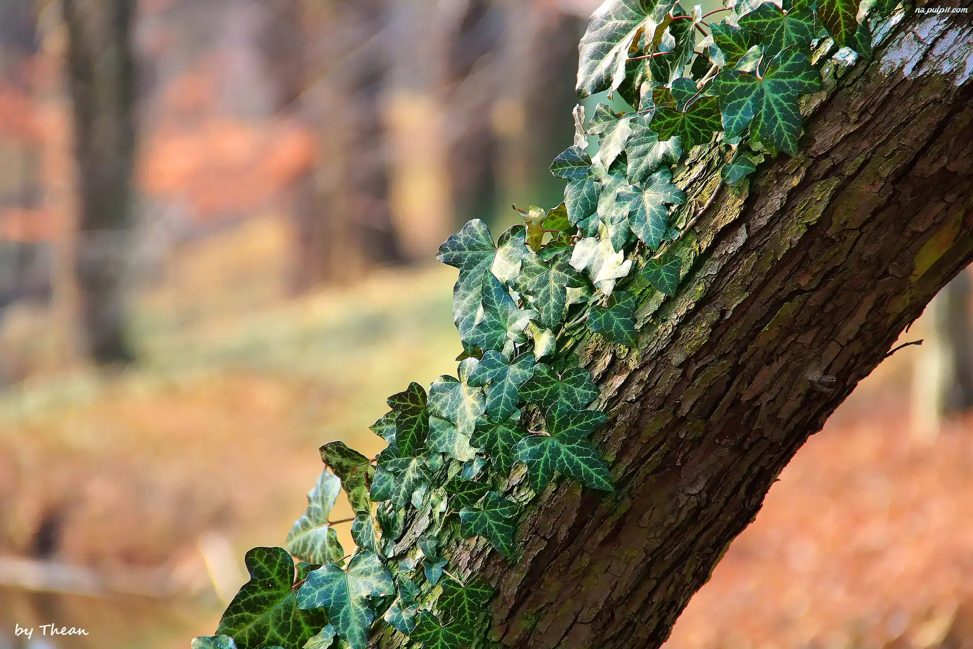 Bluszczem, Drzewa, Kora, Porośnięta Na Pulpit