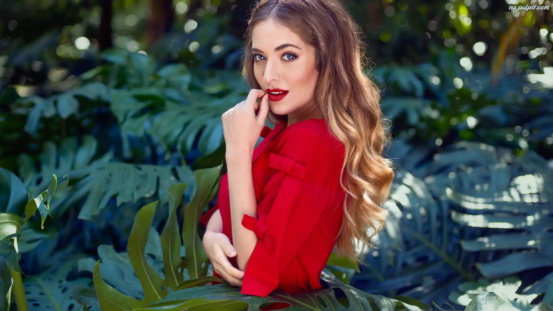 Bluzka, Długowłosa, Kobieta, Czerwona Na Pulpit