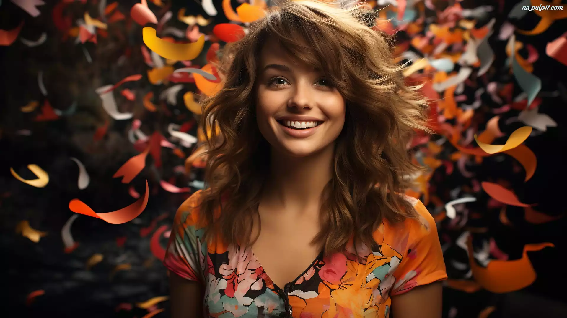 Uśmiechnięta, Kobieta, Kolorowa, Bluzka