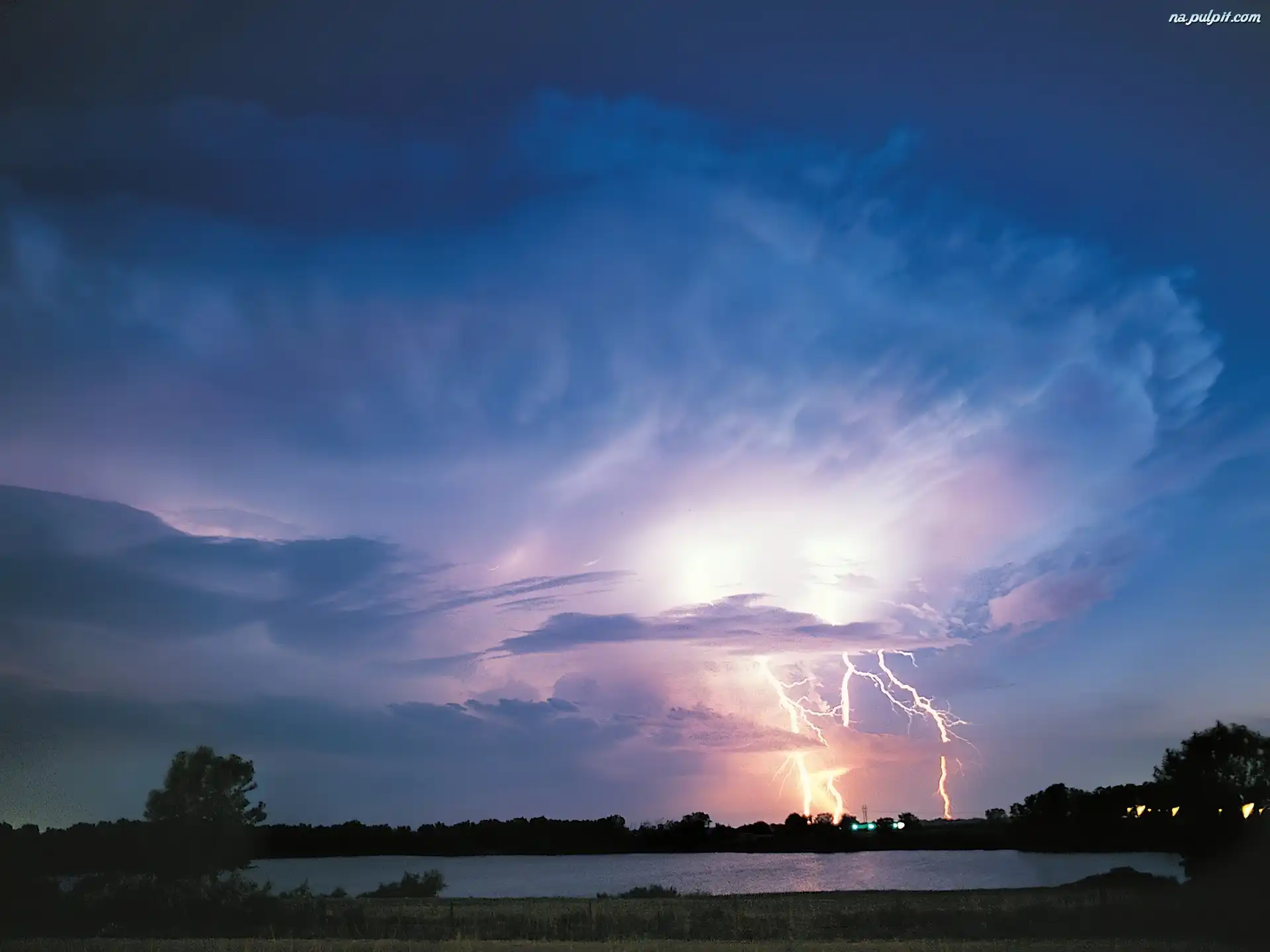 Jezioro, Błyskawica, Chmury Na Pulpit