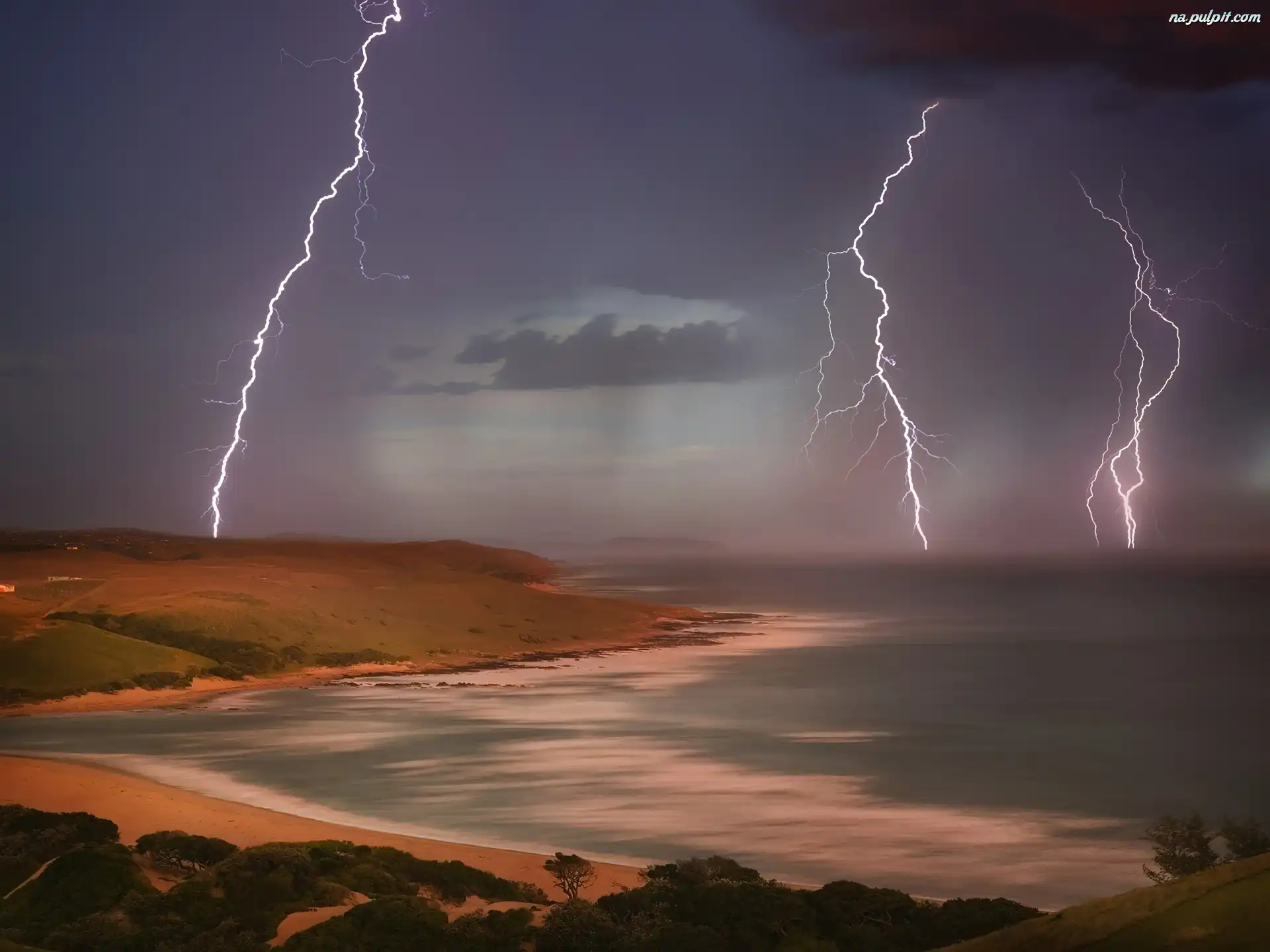 Morze, Błyskawica, Wybrzeże Na Pulpit
