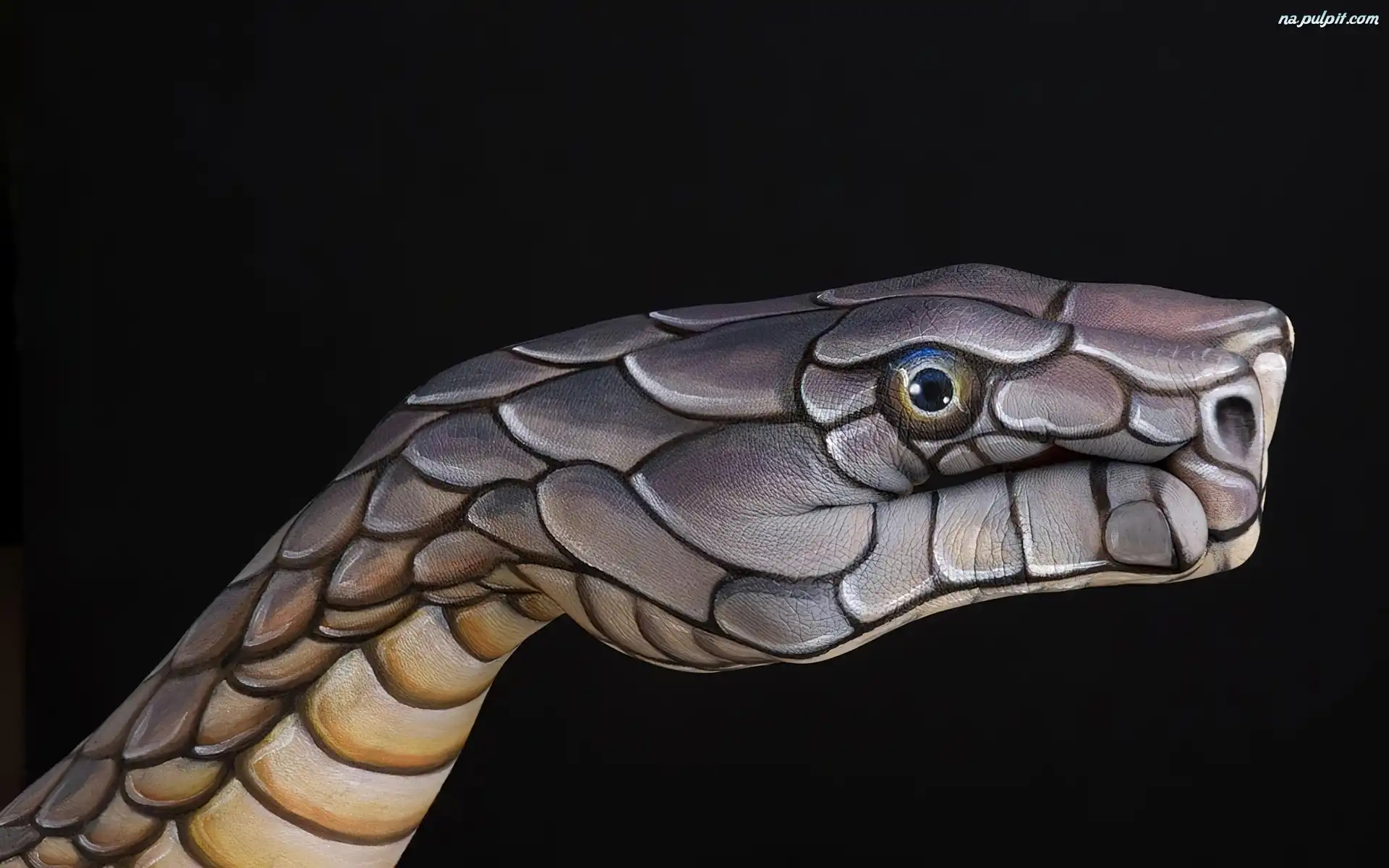 Bodypainting, Malowana, Wąż, Dłoń Na Pulpit