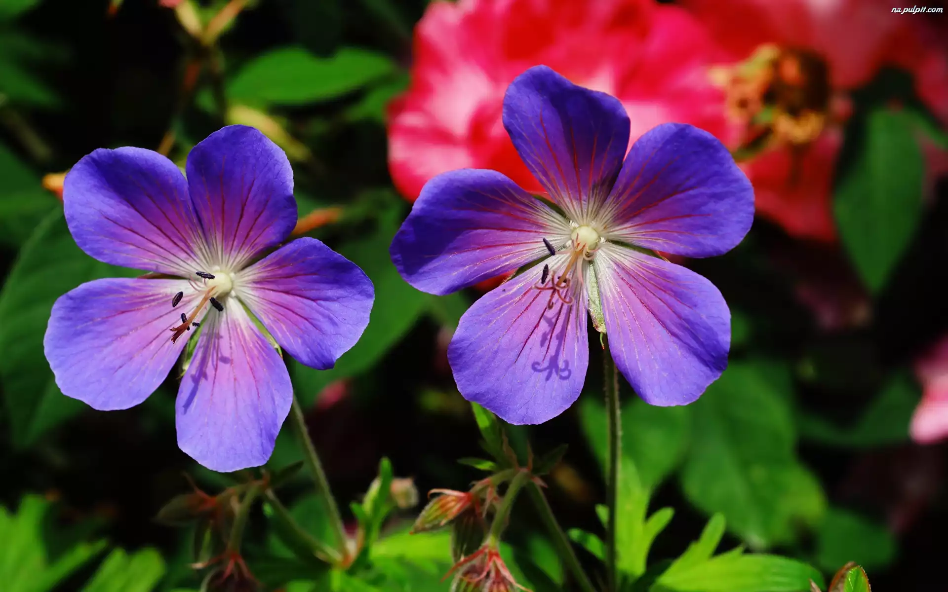 Bodziszki, Kwiaty, Dwa, Niebieskie Na Pulpit