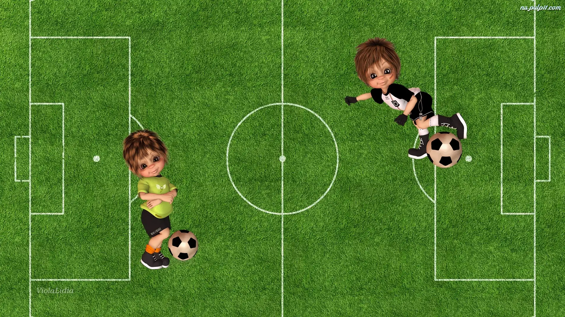 Boisko, Nożna, Piłka, Grafika, Laleczki