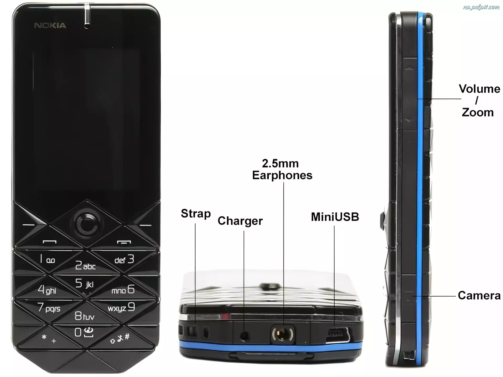 Bok, Przód, Opis, Nokia 7500, Dół