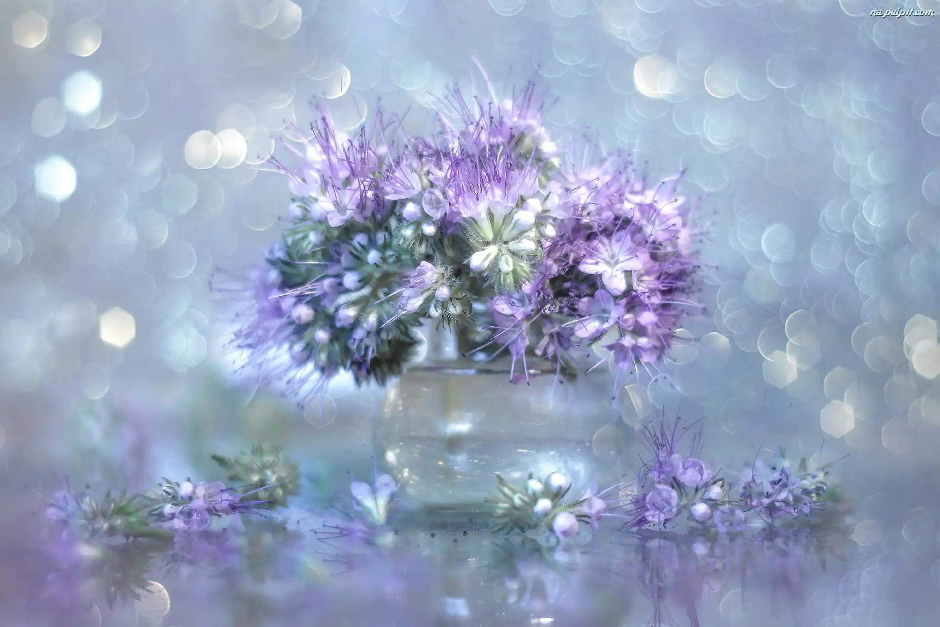 Bokeh, Kwiaty, Facelia błękitna, Wazonik