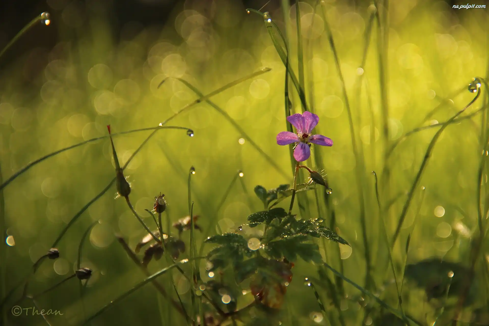 Bokeh, Kwiatek, Fioletowy, Trawa Na Pulpit