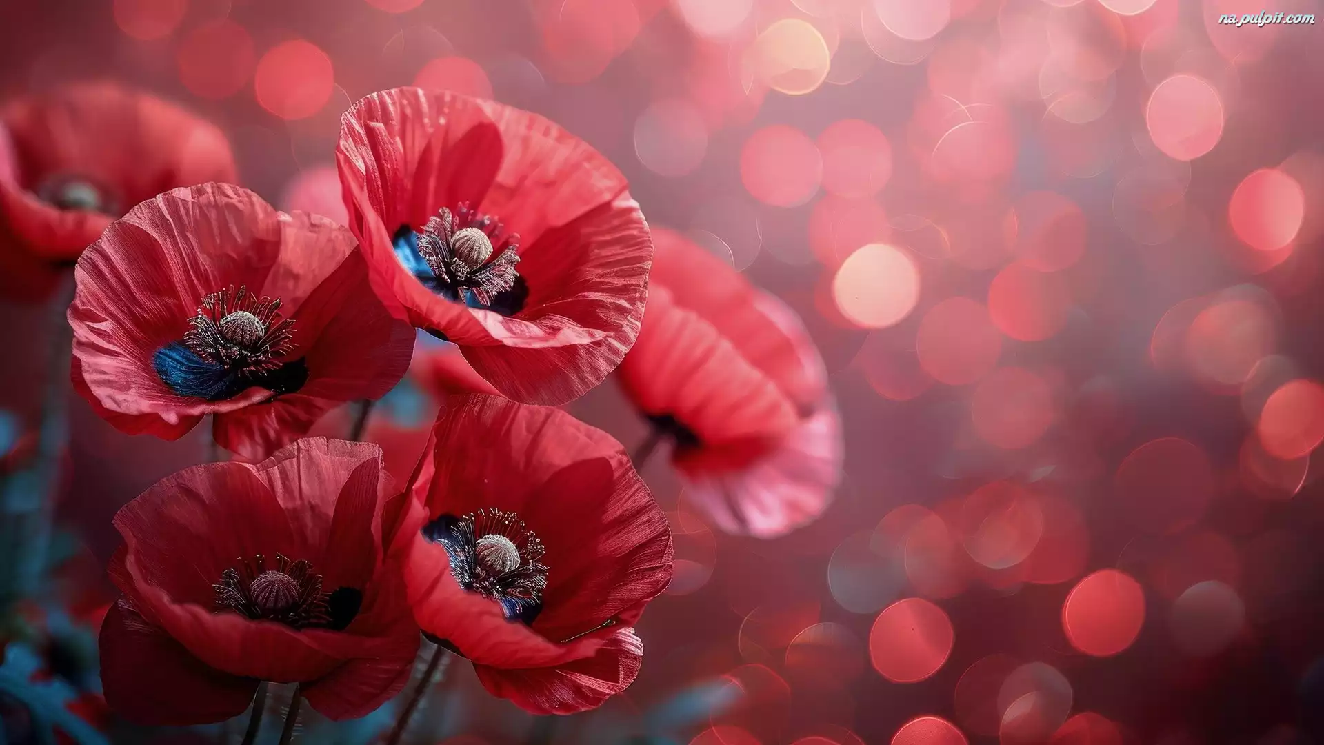 Kwiaty, Czerwone, Maki, Bokeh Na Pulpit
