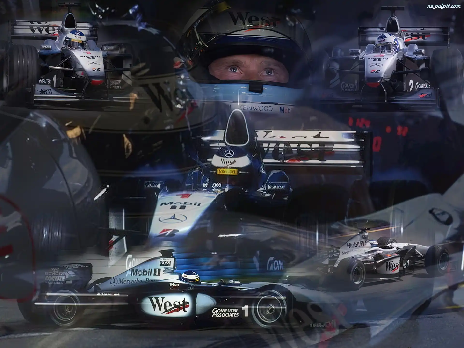 spojler, bolid, koła, West, opony, Formuła 1, kask Na Pulpit