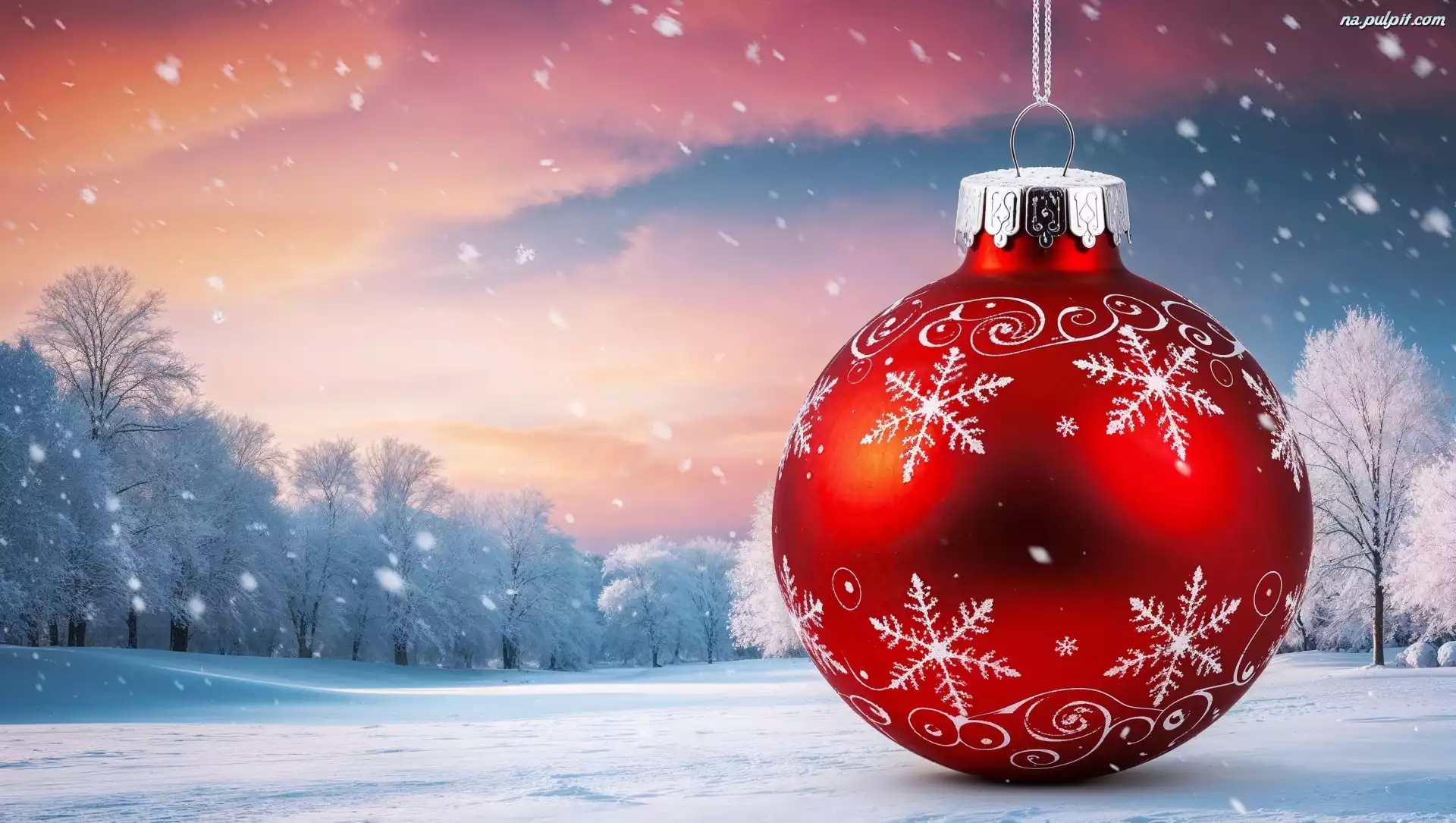 Drzewa, Boże Narodzenie, Bombka, Zima, Czerwona, Śnieg Na Pulpit