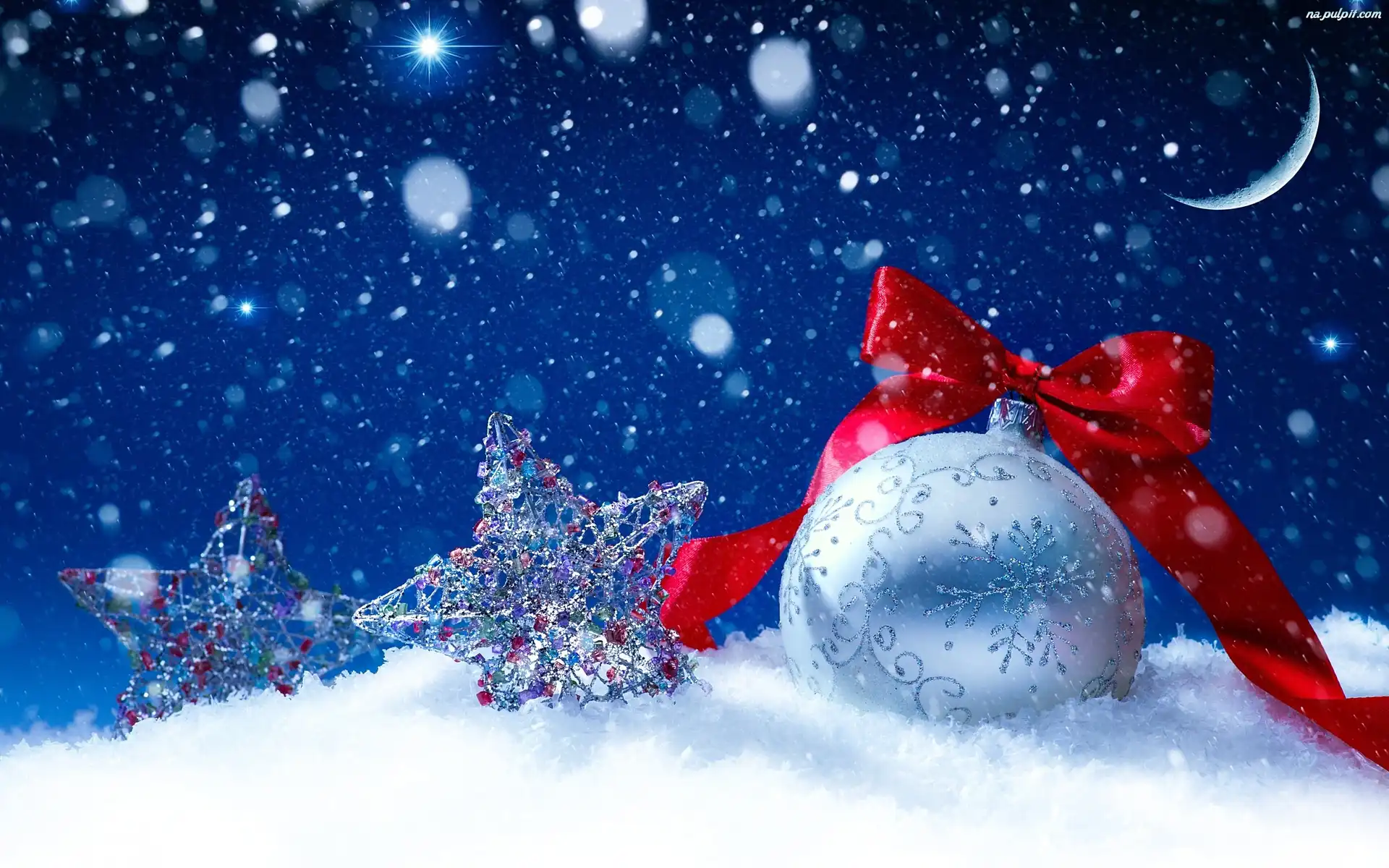 Święta, Noc, Bombka, Śnieg Na Pulpit