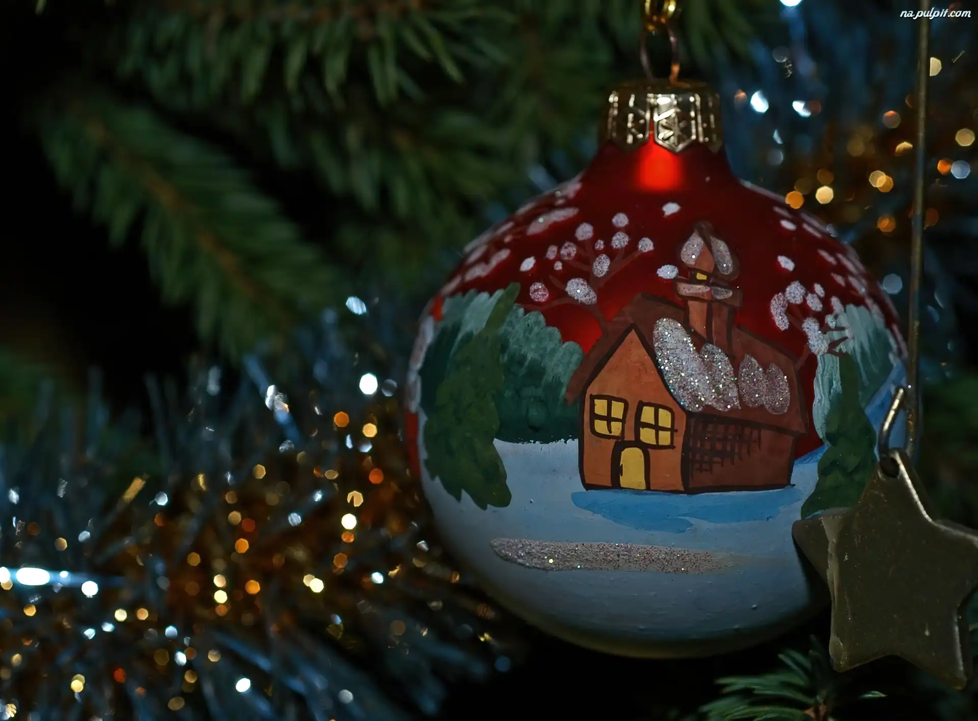 Bombka, Choinka, Oświetlona, Malowana Na Pulpit