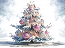 Boże Narodzenie, Choinka, Bombki, Grafika AI