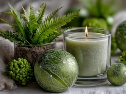 Grafika AI, Świeca, Bombki, Świąteczna, Paproć