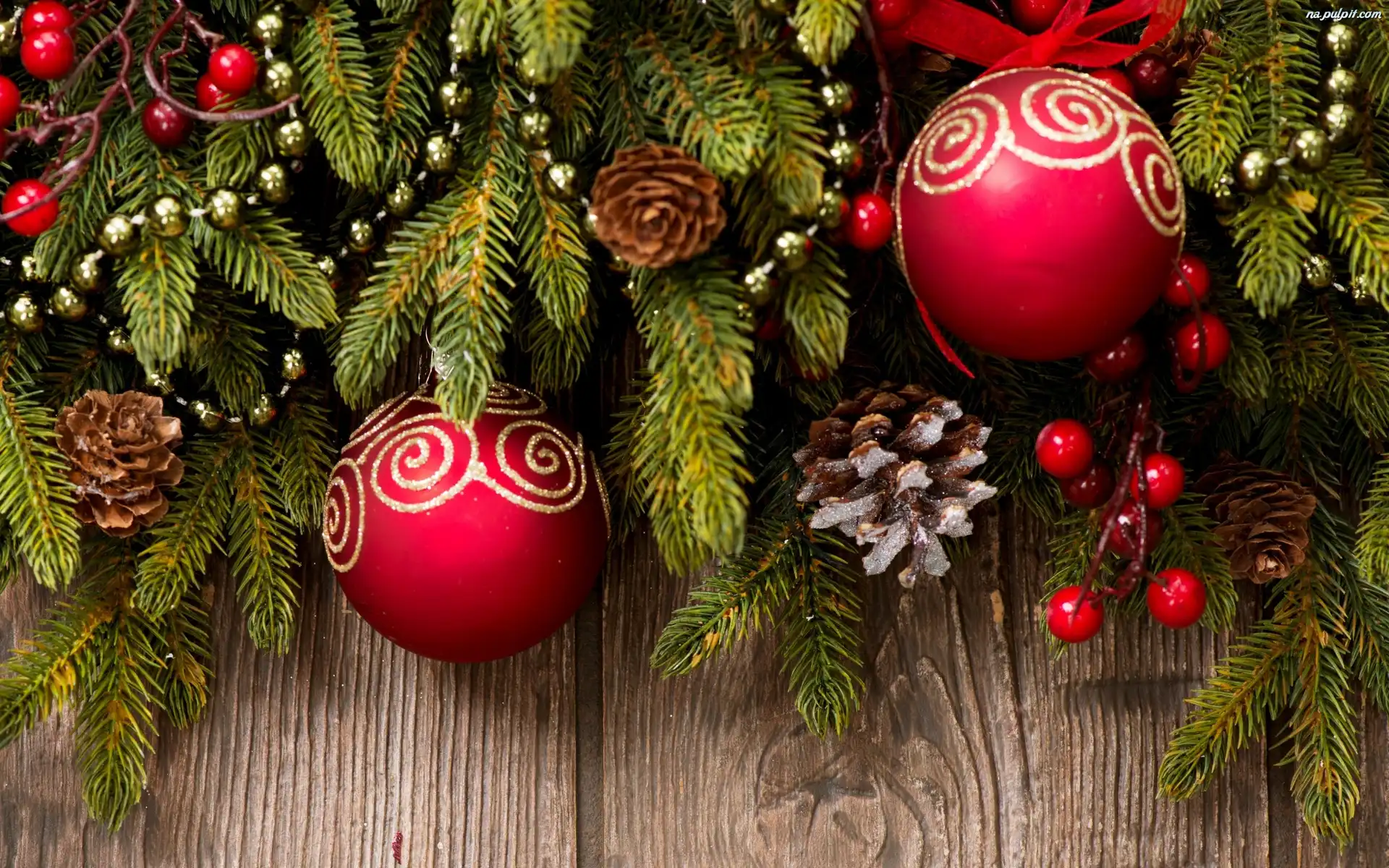 Świąteczna, Szyszki, Gałązki, Bombki, Dekoracja