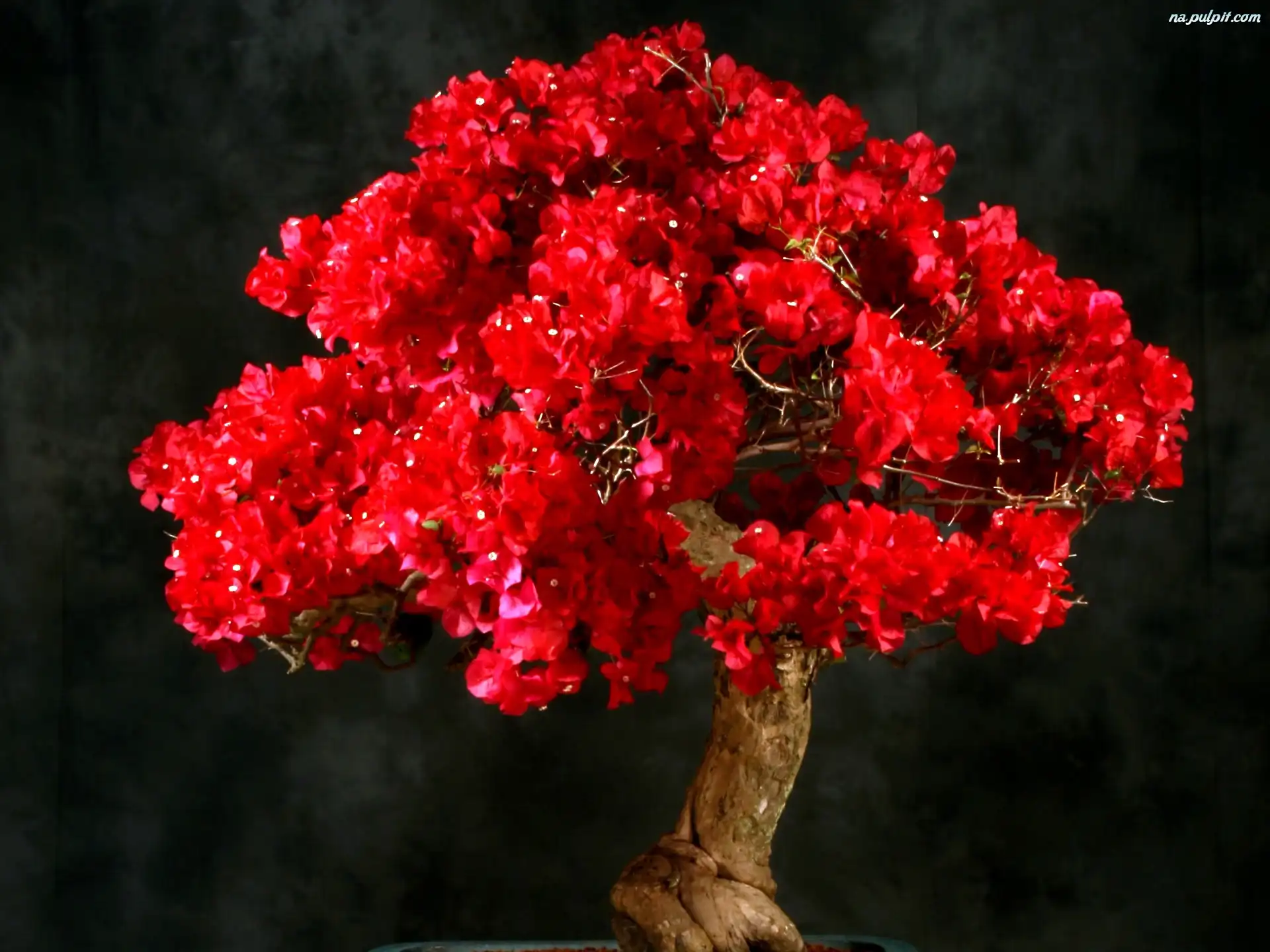 Bonsai, Bugenwilla, Czerwone, Drzewko Na Pulpit