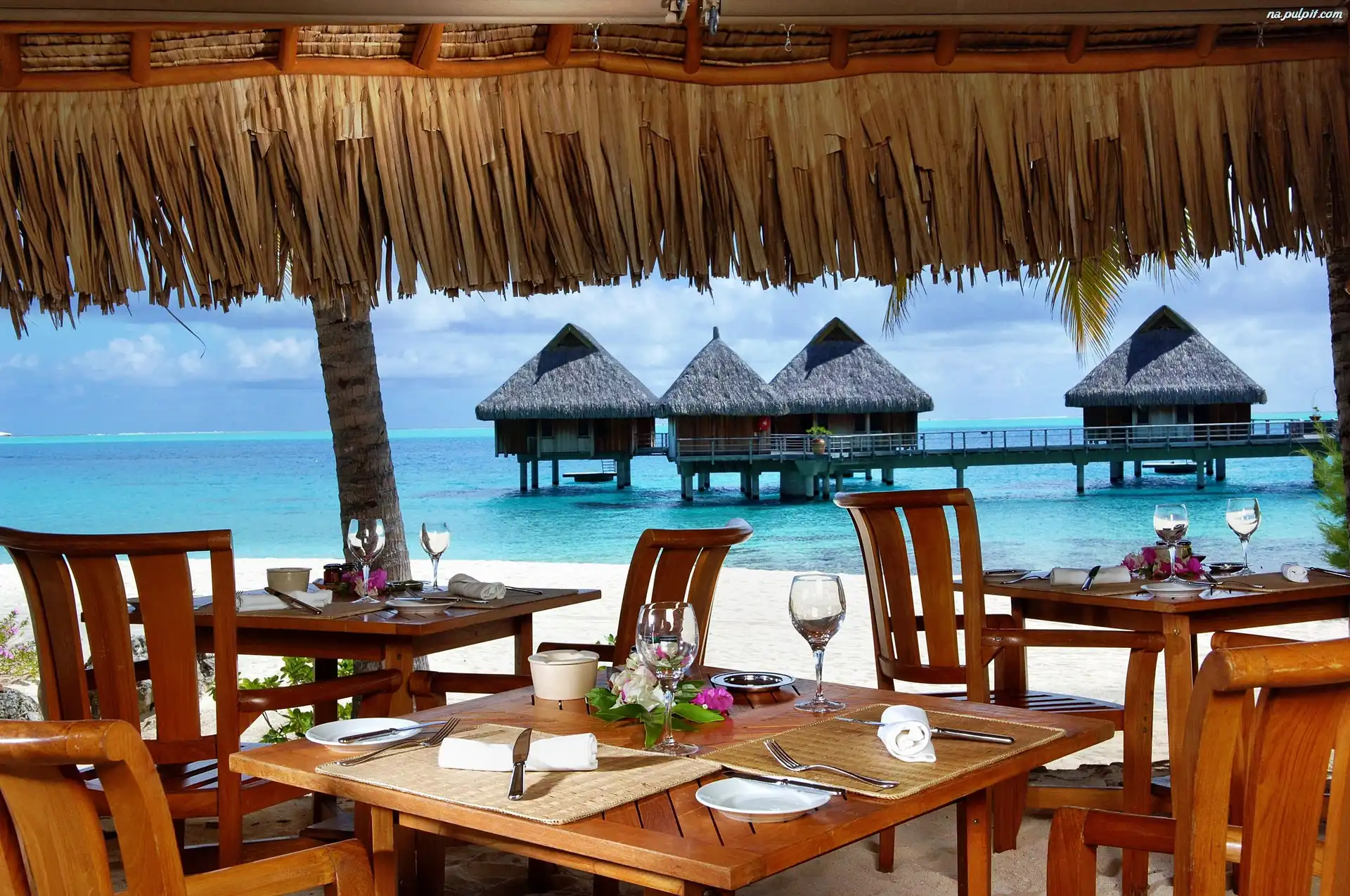 Bora Bora, Plaża, Restauracja, Ocean Na Pulpit