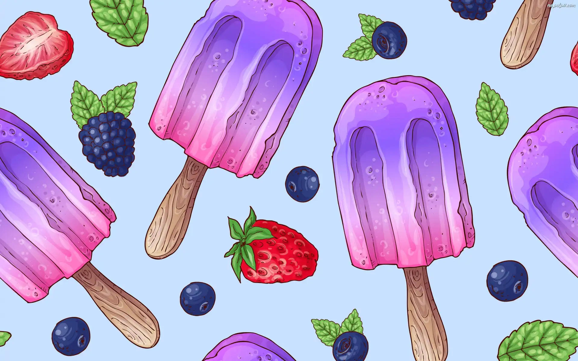 Borówki, Lody, Grafika, Truskawki Na Pulpit