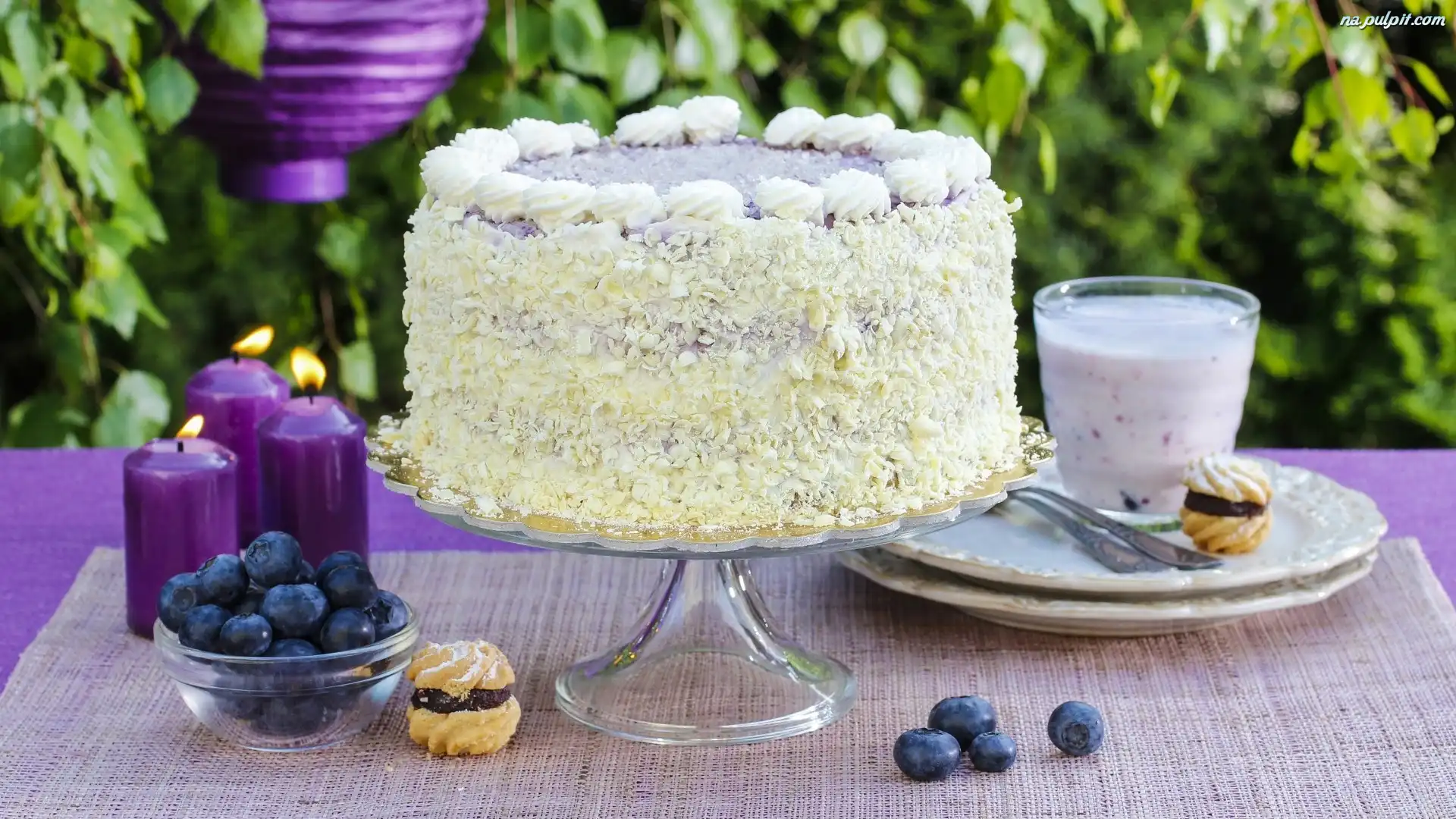 Borówki, Patera, Tort, Świeczki Na Pulpit