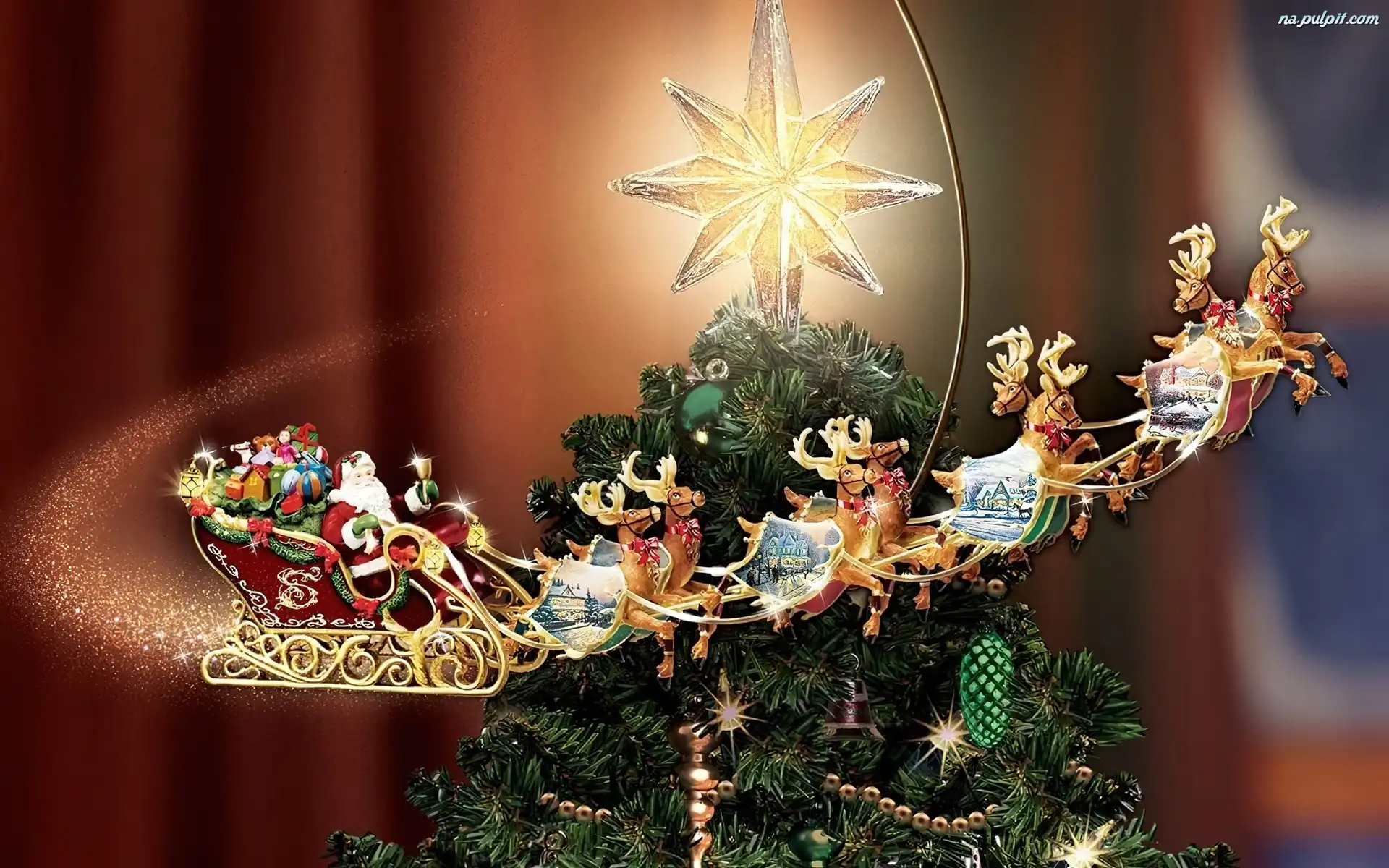 Boże Narodzenie, Sanie, Choinka, Gwiazda Na Pulpit