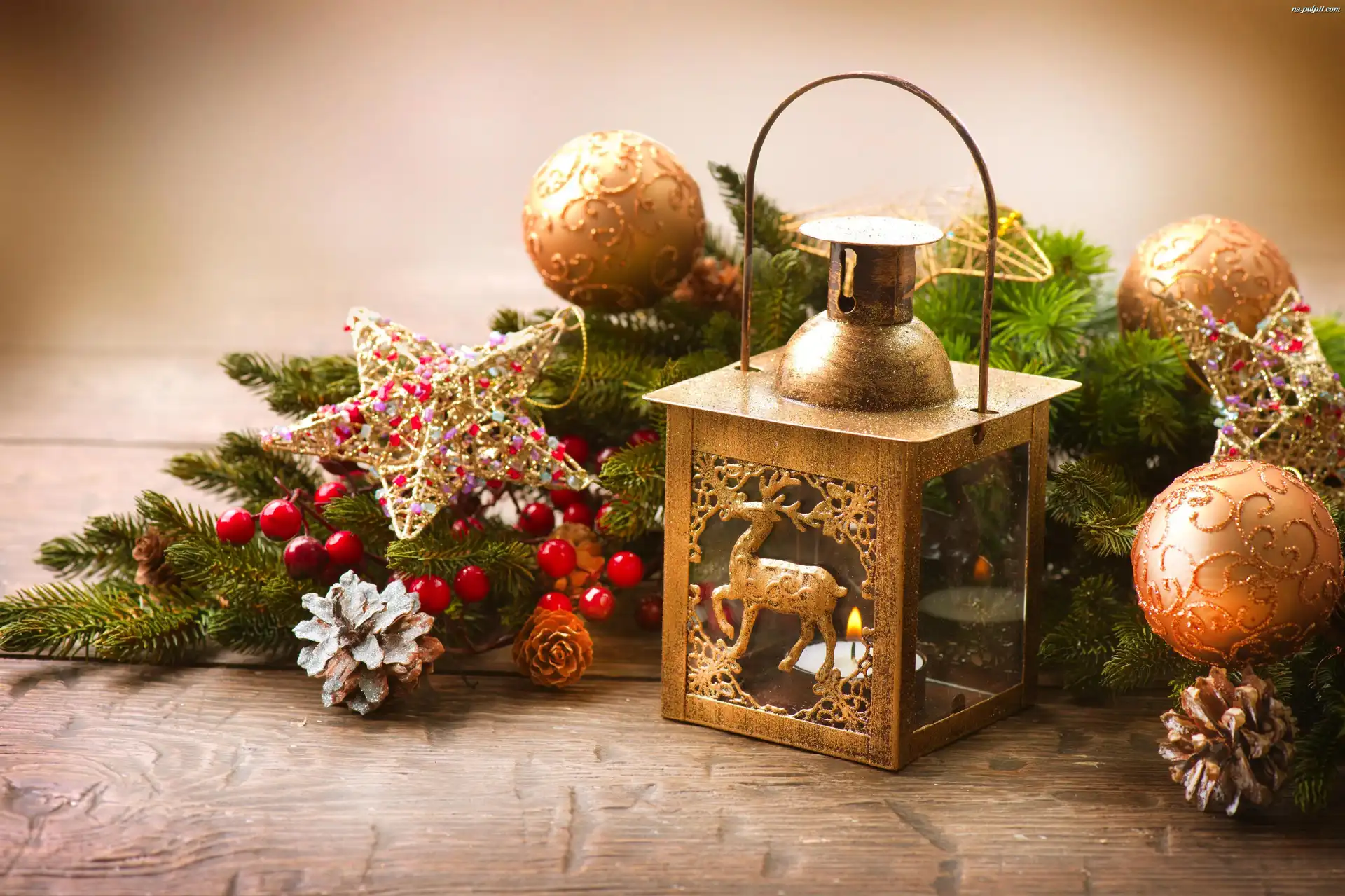 Boże Narodzenie, Bombki, Stroik, Lampion, Gwiazdki